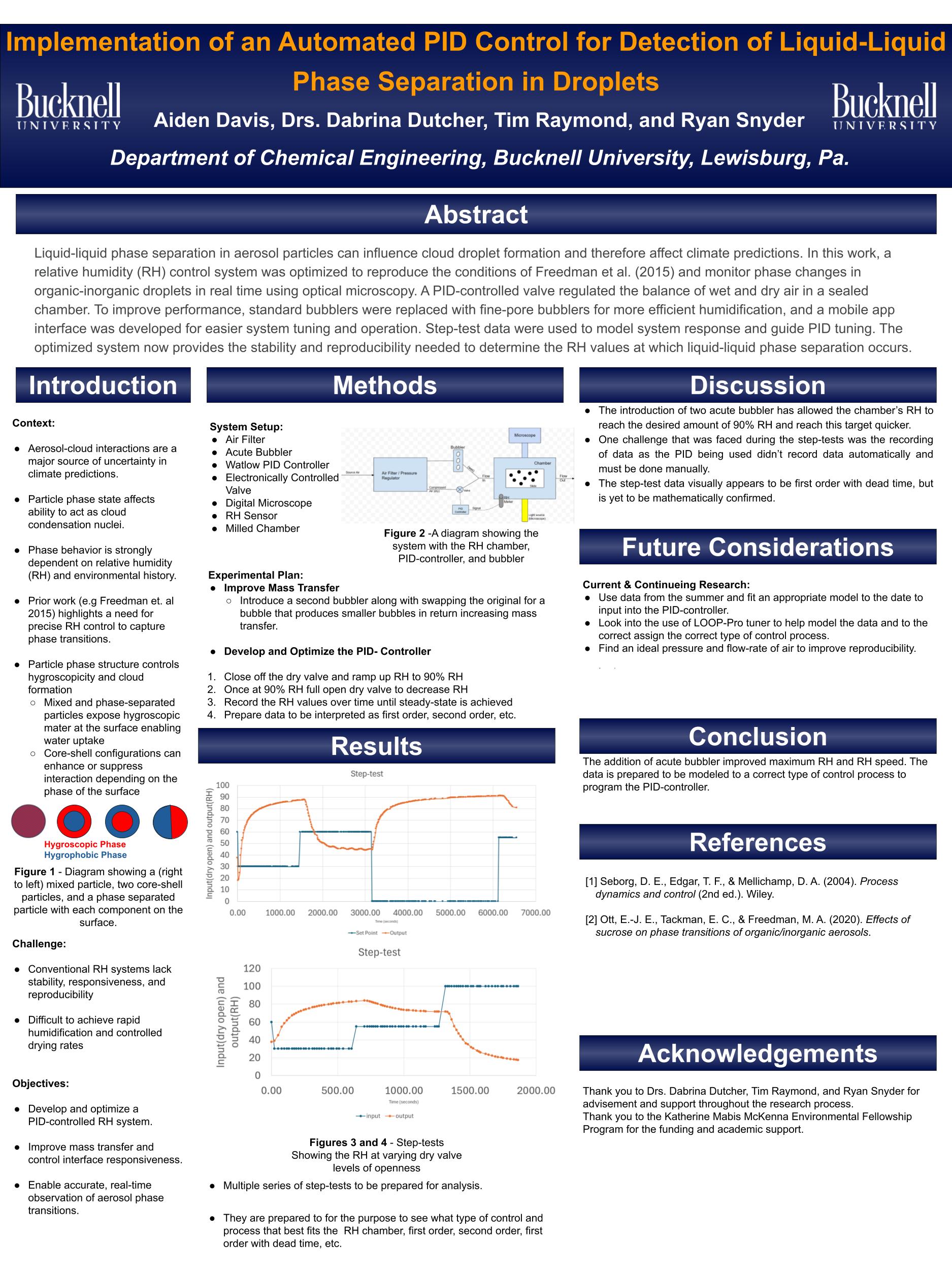 Liquid-liquid phase separation in aerosol particles can influence cloud droplet formation and therefore affect climate predictions. In this work, a relative humidity (RH) control system was optimized to reproduce the conditions of Freedman et al. (2015) and monitor phase changes in organic-inorganic droplets in real time using optical microscopy. A PID-controlled valve regulated the balance of wet and dry air in a sealed chamber. To improve performance, standard bubblers were replaced with fine-pore bubblers for more efficient humidification, and a mobile app interface was developed for easier system tuning and operation. Step-test data were used to model system response and guide PID tuning. The optimized system now provides the stability and reproducibility needed to determine the RH values at which liquid-liquid phase separation occurs.